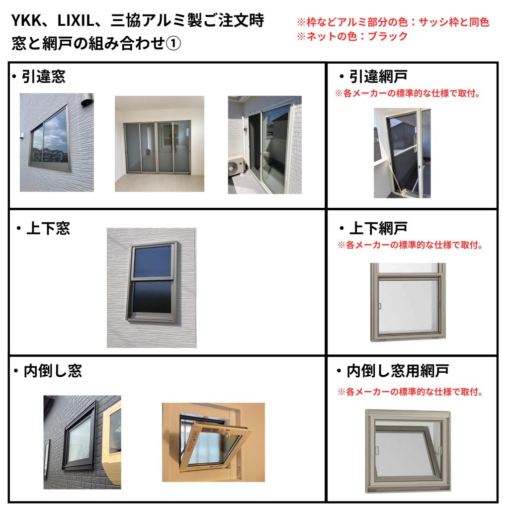 「窓の仕様」と「網戸の仕様」の組み合わせ